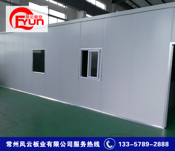 第三,整個(gè)隔斷的結構做好,就(jiù)可(kě)以進行封牆麵(miàn)板。若是單層(céng)彩鋼板常規是采用900型或840型來封牆麵,若用的夾芯板就采(cǎi)用(yòng)950型或1150型夾(jiá)芯平板來封牆麵。
